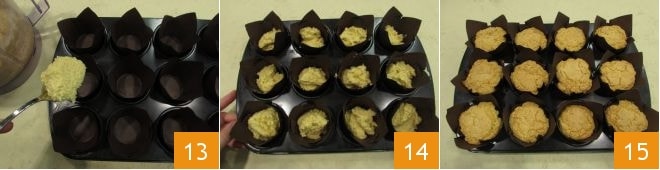 Place the muffin liners in a muffin pan and use a spoon to transfer the batter inside, not exceeding 2/3 of their capacity (13-14); you should distribute about 2.3 oz of batter per liner. Bake in a preheated static oven at 340°F for about 25 minutes; always do the toothpick test and once cooked, remove from oven 15 and enjoy your 5-minute muffins!