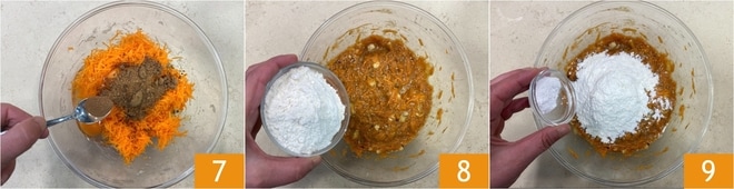 Also add the cinnamon 7, sifted flour 8, and baking powder 9.