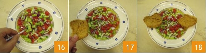 Mix everything with a spoon 16, place the friselle around the dish 17, and serve the acquasale 18!