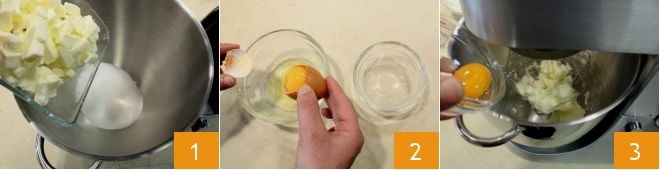 To prepare the alfajores, start with the cookie dough: in the bowl of a stand mixer, add the sugar and soft butter in pieces 1, start the whisk and meanwhile separate the yolk from the white 2. Add the yolk to the dough 3
