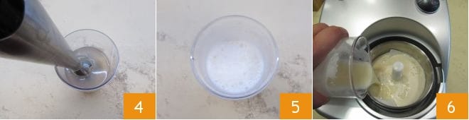 Blend the ingredients using an immersion blender 4 until you get a cream 5. Pour the mixture into the ice cream maker (follow your ice cream maker's instructions: for the one we used, it's not necessary to cool the bowl in the refrigerator) 6.