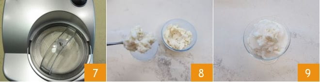 Let the ice cream maker run for at least 30 minutes 7. After this time, you will obtain a creamy and compact mixture. Then transfer the granita to glasses, preferably chilled so it doesn't melt quickly 8, and serve the almond granita for a refreshing snack 9!