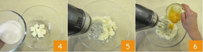 Continue by placing the softened butter at room temperature and sugar in a bowl 4 and beat with a mixer until the mixture is light and fluffy 5. With the mixer still running, add the yolks a little at a time 6.