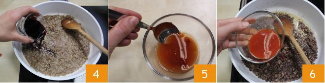 Then add the wine and let it evaporate 4. Dilute the tomato paste in a little water 5 and add it to the meat 6, mix well, season with salt and pepper, and continue cooking for 20 minutes over moderate heat.