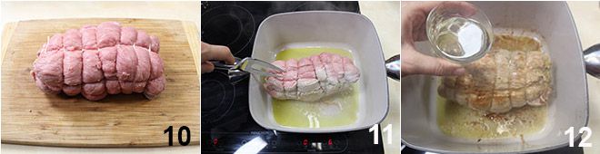 and 10 (see how to tie a roast How to tie a roast). In a large ovenproof pot, cook the roll over high heat with 3 tablespoons of olive oil, turning it occasionally to brown it on all sides 11. When the roll is well browned, deglaze with white wine 12.