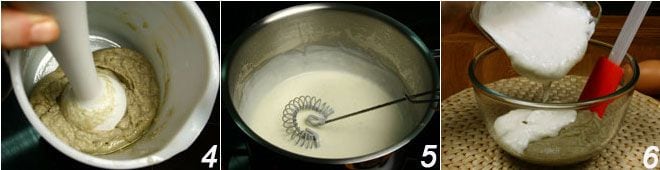 When cooking is complete, and the cooking liquid has completely evaporated, pepper and salt if necessary. When the mixture has cooled, blend it until you obtain a smooth cream 4. Prepare a Béchamel sauce by melting the butter in a pan; add the flour, mixing to remove all lumps, then add the milk, salt, and nutmeg. When the béchamel is thick 5 but not too thick, turn off the heat. Mix the béchamel with the artichoke cream 6