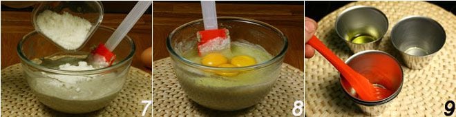 and also add 2 tablespoons of grated parmesan 7 and the 3 eggs 8. Oil 5 molds (like for crème caramel) 9