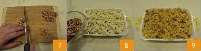 Roughly chop the walnuts 7 and distribute them over the pasta 8. Cook for 3-4 minutes in the oven in grill mode 9. Your baked gorgonzola pasta is ready to be served!