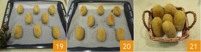 At this point, place the croquettes on a baking sheet and drizzle with a little extra virgin olive oil 19. Bake in a preheated static oven at 392°F for 30-35 minutes until the croquettes are golden brown 20. Serve the baked rice croquettes hot to preserve their crispness 21.
