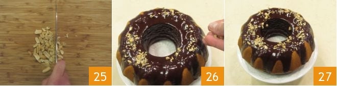 Chop the peanuts for decoration 25 and distribute them over the surface of the cake 26. The banana and peanut bundt cake is now ready to be served 27!