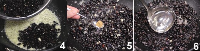 add the beans 4, the pinch of cumin and coriander 5, cover with hot water 6 and let simmer for about an hour, until the beans have softened, then season with salt and pepper.