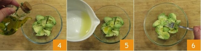 Season with olive oil 4, lemon juice 5, then mash the flesh with a fork 6,