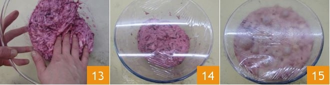 Knead everything and cover with plastic wrap or a cloth and leave at room temperature, making sure to fold the dough every 10 minutes for 3 times 13. Then let it rise for another 12 hours in the refrigerator 14. After 12 hours, take out the dough and place it in a turned-off oven with the light on for at least 2 hours. After resting, the dough will have increased in volume 15.