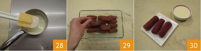 Place them on a tray 22 and proceed with the others. At this point, pour abundant seed oil in a pan and put it on the stove until it reaches a temperature of about 284-302°F. As soon as the oil is hot, immerse a few pieces at a time with the help of a slotted spoon 23. Cook the beetroot croquettes for a couple of minutes until they are well golden. Then drain them on a sheet of absorbent paper 24 to remove excess oil.