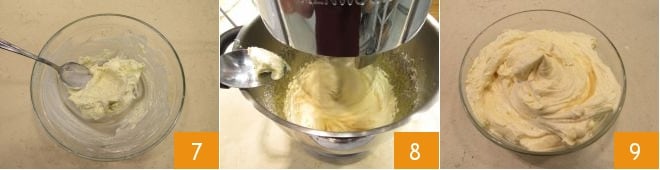 Using a spoon, start working it until you have a homogeneous mixture 7. Gradually incorporate the vanilla-infused butter into the stand mixer 8, adding it one spoonful at a time, and continue beating until you obtain a soft and creamy mixture. Place the buttercream in a bowl 9 and store it in the fridge until ready to use.
