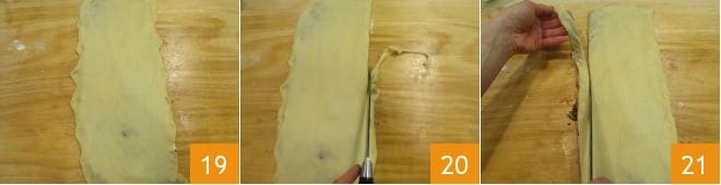 At this point 19 trim the edges with a knife 20. Then cut strips about 1 inch wide 21; you should get 8 of them.