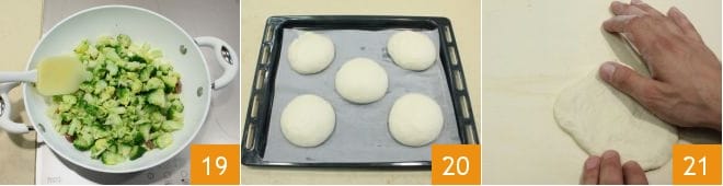 Mix and cook the broccoli and anchovies for about 10 minutes 19. When the dough balls have doubled in volume 20, take each one and roll it into a disc about 8 inches in diameter 21.