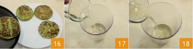 until they are nicely golden 16. Now prepare the Fake mayonnaise without eggs to dress the broccoli burgers: in a tall container, pour the seed oil and soy milk at room temperature (17-18).