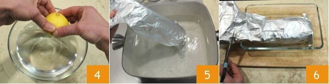 place them in a bowl full of water where you squeezed the lemon juice 4 to prevent them from darkening, also leave the squeezed lemon in the water for better results. Place a large pot filled with water on the heat and cook the zampone in its casing for about 20 minutes 5. Once cooked, drain the zampone, take it out of the thermal bag 6