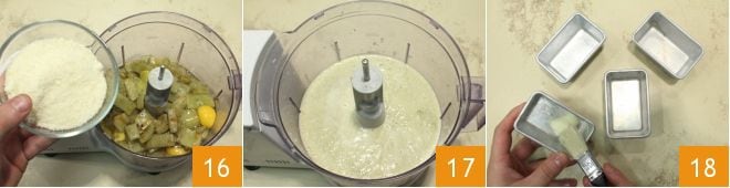 the grated Parmesan cheese 16 and start the blender, blending everything until you obtain a creamy mixture 17. Now butter the rectangular molds measuring 6x4 inches 18, or alternatively, you can use muffin molds with a capacity of about ½ cup.