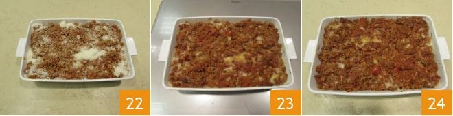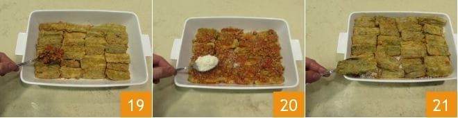 After forming the first layer, add a little more sauce 19 and sprinkle with grated Parmesan cheese 20 and continue in this way, alternating layers of cardoons 21 with sauce and cheese until the ingredients are finished.