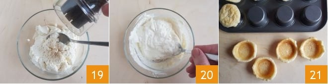 Then add the Parmesan and a grind of pepper 19. Mix until you get a cream 20. Retrieve the cooled baskets and gently remove them from the mold 21;