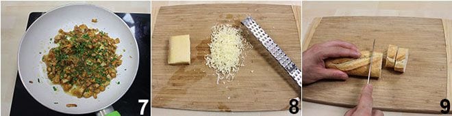 cook for another minute, finish cooking, and season with salt and pepper 7. Meanwhile, grate the Gruyere 8 and cut 8 slices about 1-1.5 inches thick from a baguette 9.