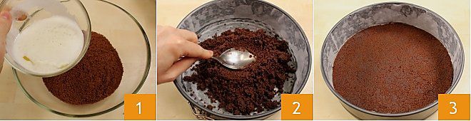 To prepare the banana and chocolate cheesecake, start with the base: put the cocoa cookies in a food processor and finely chop them. Melt the butter over low heat in a saucepan; meanwhile, place the crumbled cookies in a bowl and gradually add the melted butter, mixing everything well 1. Butter a cake pan, preferably with a springform, with a diameter of about 9 inches; cut a circle of parchment paper the same diameter as the mold and two strips the same height as the edges. If necessary, you can refer to the guide on how to line a cake pan with parchment paper. Then, place the crumbled cookies in the pan covered with parchment paper and, using the back of a spoon, compact the cookie base well 2. Chill the base in the fridge for 30 minutes or in the freezer for 15 minutes 3.