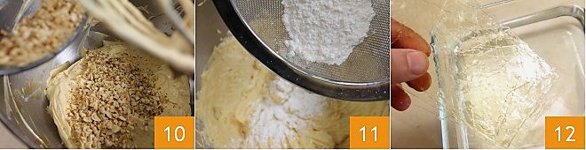 Add 25 g of chopped hazelnuts to the Philadelphia and caramel cream 10 and finally the powdered sugar 11. Soak the gelatin sheets in cold water for 10 minutes 12. If you want to know more about using gelatin, here is our Cooking School: how to use gelatin.