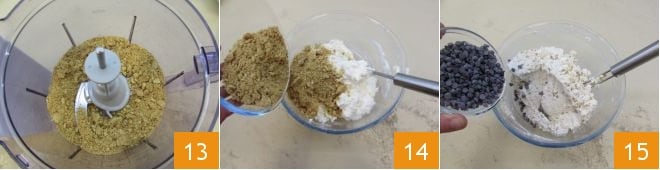 Blend until they are coarsely crushed 13. Add the crushed cookies to the cream 14, mix with a spatula, add the chocolate chips 15 and combine well.