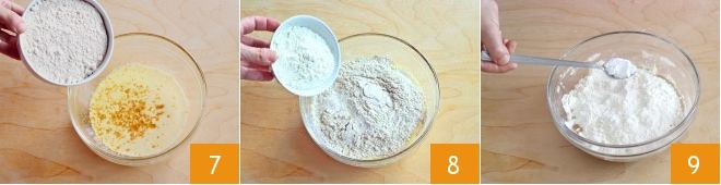 the chestnut flour 7 and all-purpose flour 8. Then add the baking powder 9,