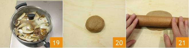Cover with a lid and cook again for another 10 minutes 19. In the meantime, prepare the spaghetti alla chitarra; after resting, the fresh pasta will be softer and more elastic 20. Flour the work surface and equip yourself with a rolling pin or a pasta roller: before rolling it out, flatten your dough ball with a light pressure of your fingers, then roll out the sheet to a thickness of 0.08 inches (2 mm) 21.
