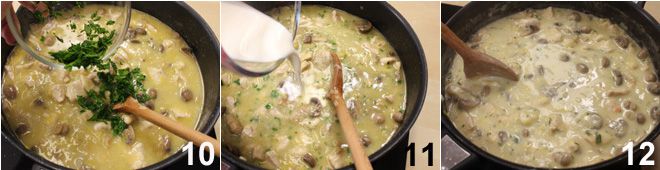 Add the chopped parsley 10 and the fresh cream 11 and stir to thicken the cream 12.
