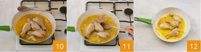 Let it cook this way for about 25 minutes with the lid on 10, raising the heat in the last minutes of cooking to brown them (11-12).