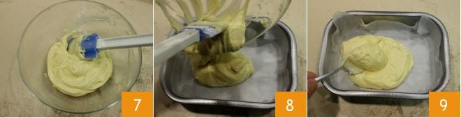 Mix the ingredients thoroughly 7. Take a baking tray with dimensions of approximately 6x4 inches and line it with parchment paper. Then pour the obtained batter 8. Level it out with the back of a spoon 9