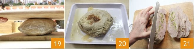 then place it on a tray and put a weight on top of it (we used a heavy cutting board) 19. The cima should rest this way overnight in the refrigerator: the next morning it will be well compacted and will have released the gelatin 20. Serve your Cima alla Genovese sliced 21!