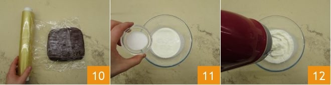 Shape into a dough and wrap it in plastic wrap 10. Then let it rest in the refrigerator for at least an hour and prepare the cream. In a bowl pour the cold cream from the fridge and sweeten it 11. Insert the beaters and whip at medium-high speed until the mixture is almost stiff 12.