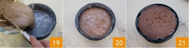 which you will transfer to a previously greased and lined 9-inch springform pan with parchment paper 19; level the surface with a spatula 20 and bake in a preheated static oven at 340°F for 40 minutes (or at 300°F for 30 minutes if using a fan oven). Once ready 21, remove the cake from the oven and let it cool completely.