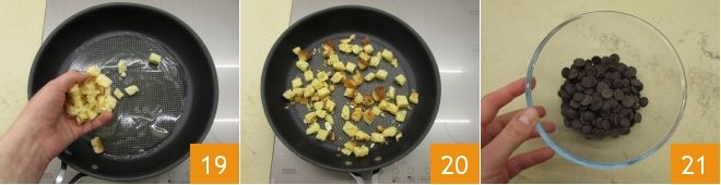 and sauté them in a pan with a pat of butter (19-20). Set aside, and just before removing the semifreddos from the freezer, melt the chocolate in the microwave or a bain-marie 21
