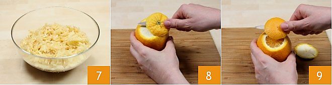 collecting them in a large bowl 7. Now peel the oranges by cutting off the two ends with a small knife (8-9);