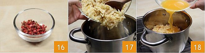 finally add the pink pepper, both the chopped and the whole peppercorns 19. These steps should be done with the heat off. In a bowl, place 500 grams of granulated sugar and add 1 packet of Fruttapec 2:1 20, then mix the two ingredients with a spoon 21.