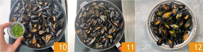 Add the chopped parsley 10, stir one last time 11, and serve your mussels marinara hot 12!