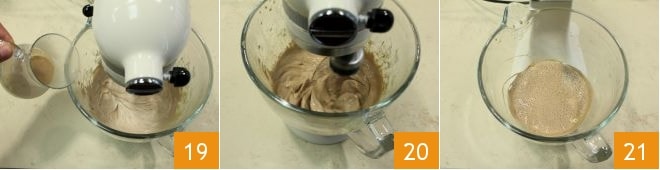 and the hot milk gradually 19, operating the stand mixer 20 until you obtain a homogeneous and frothy mixture 21.