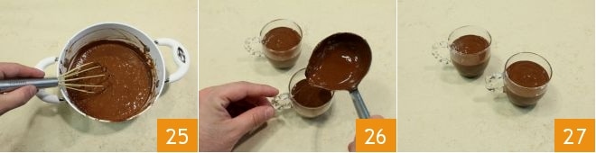 When the cream has thickened 25, turn off the heat and with the help of a ladle pour it into the cups 26: enjoy your coffee cream hot immediately 27.