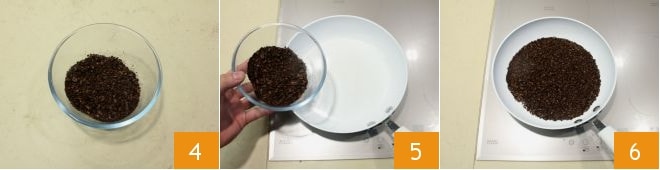 once this procedure is completed 4, put the beans in a large non-stick pan 5, distributing them evenly and let them heat while stirring for a few moments 6.
