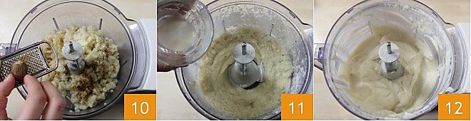 and also add the nutmeg 10. Blend everything for a moment, then add the cream 11 and blend until you get a creamy consistency 12.