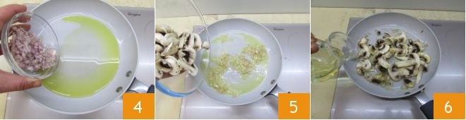 and sauté the shallot for about 4-5 minutes, add all the champignon mushrooms, deglaze with the Chardonnay wine 6