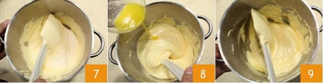 Using a spatula, mix the ingredients with a motion from bottom to top to combine them uniformly 7. Melt the butter in the microwave on high power for about 45-50 seconds. The butter should reach a temperature of 95°F-104°F. Add it gradually 8 and mix all the ingredients well from bottom to top to obtain a homogeneous and dense mixture 9.