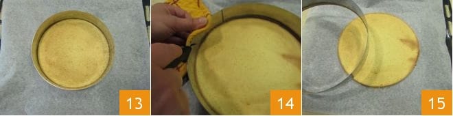 Bake in a preheated static oven at 392°F for about 7-8 minutes (if using a fan oven, bake at 356°F for about 5 minutes). Once baked 13, let them cool slightly, then gently remove them from the ring (14-15) and repeat the process for all the disks, then let them cool completely.