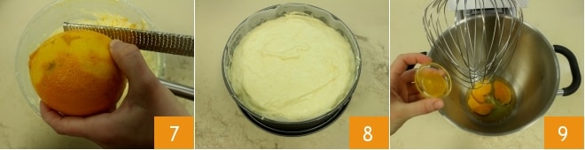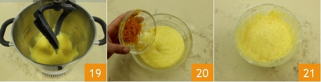 until it thickens 19. Pour the still hot cream into two bowls: in one, add the grated zest of an orange 20 and cover with cling film in contact with the surface 21 to let it cool at room temperature.